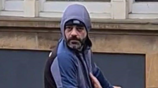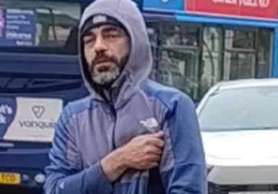 He is described as white, of a slim build, in his early 30s and around 5ft 9ins tall. He is seen in the CCTV image wearing a blue and black tracksuit with a hoody and appears to have a greying beard for facial hair.