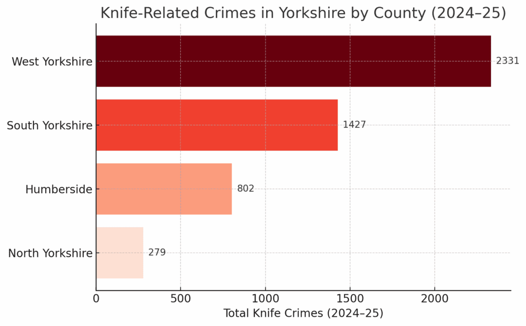 Over the last 5 years, between March 2020 and March 2025, knife-related crime in Yorkshire has seen a staggering 65 per cent increase overall.