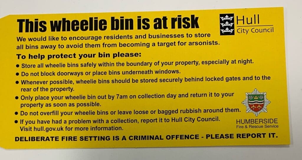 Yellow tags will be placed on bins which are deemed a potential high risk by Hull City Council, in partnership with Humberside Fire and Rescue.