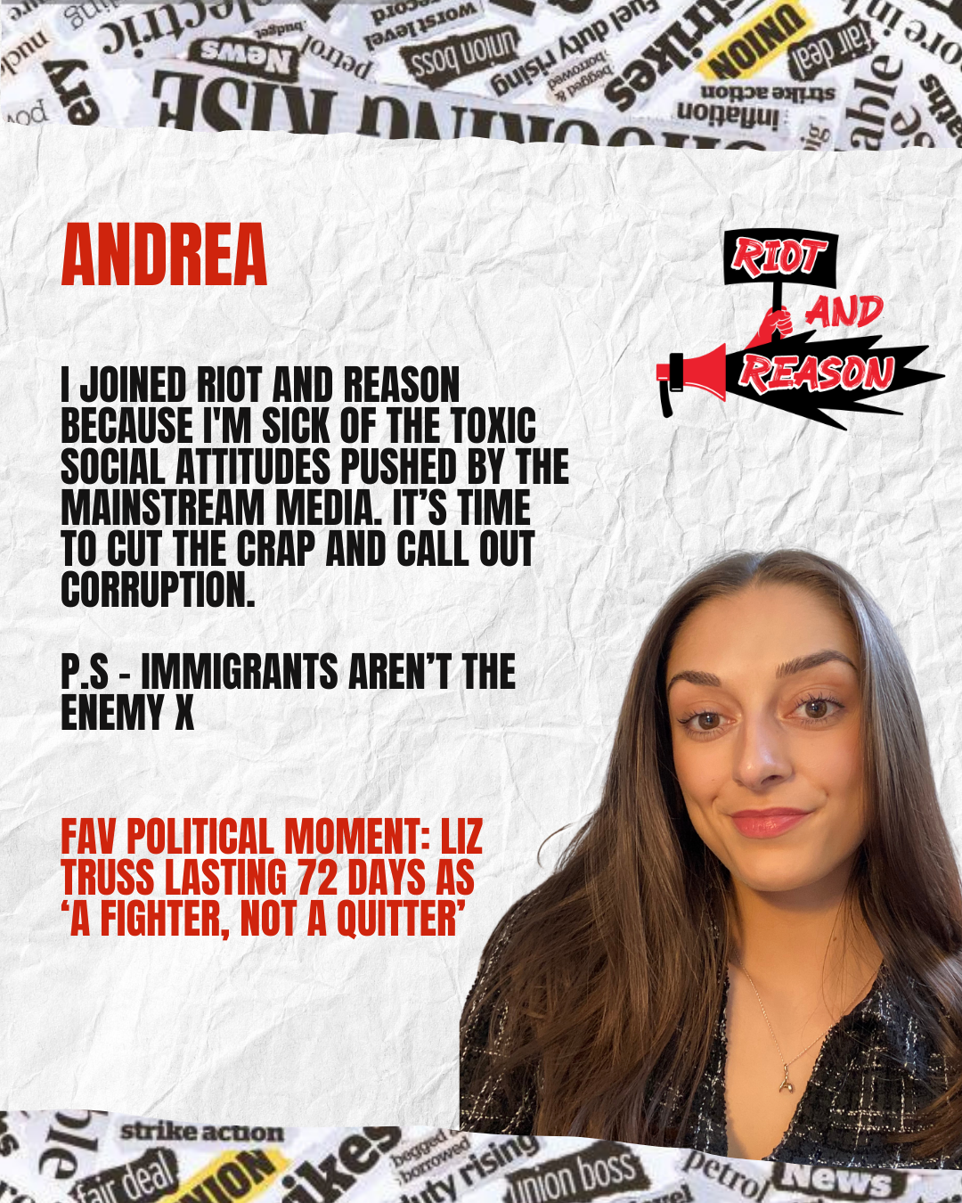 We’re here to amplify the voices of 18-35 year olds who feel unheard or unsure where to begin. We challenge the status quo, expose the cracks in the system and explore how we might actually fix them. Riot and Reason isn’t about blind rage or blind hope, it’s about confronting the chaos head on with clarity, wit and purpose.